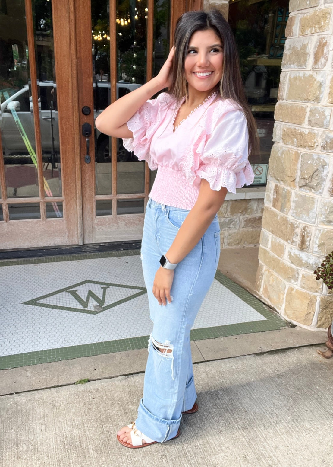 90'S VINTAGE SUPER HIGH RISE FLARE JEANS NON STRETCH DENIM, SUPER HIGH RISE WAIST, 90'S VINTAGE STYLE, DISTRESSED DETAIL, FULL LENGTH, FLARE JEANS F. RISE: 11 1/4" / INSEAM: 34" / LEG OPENING: 20"