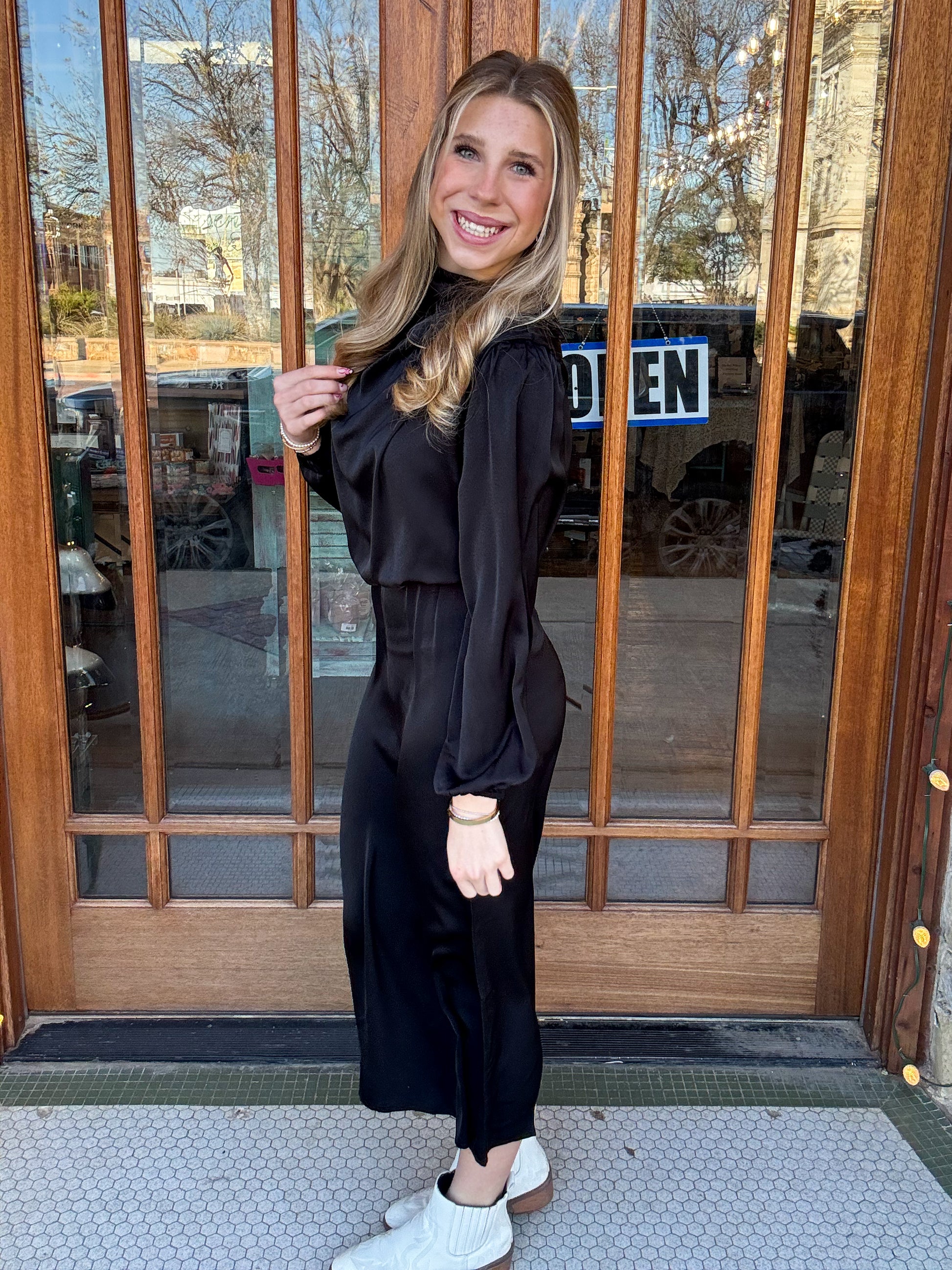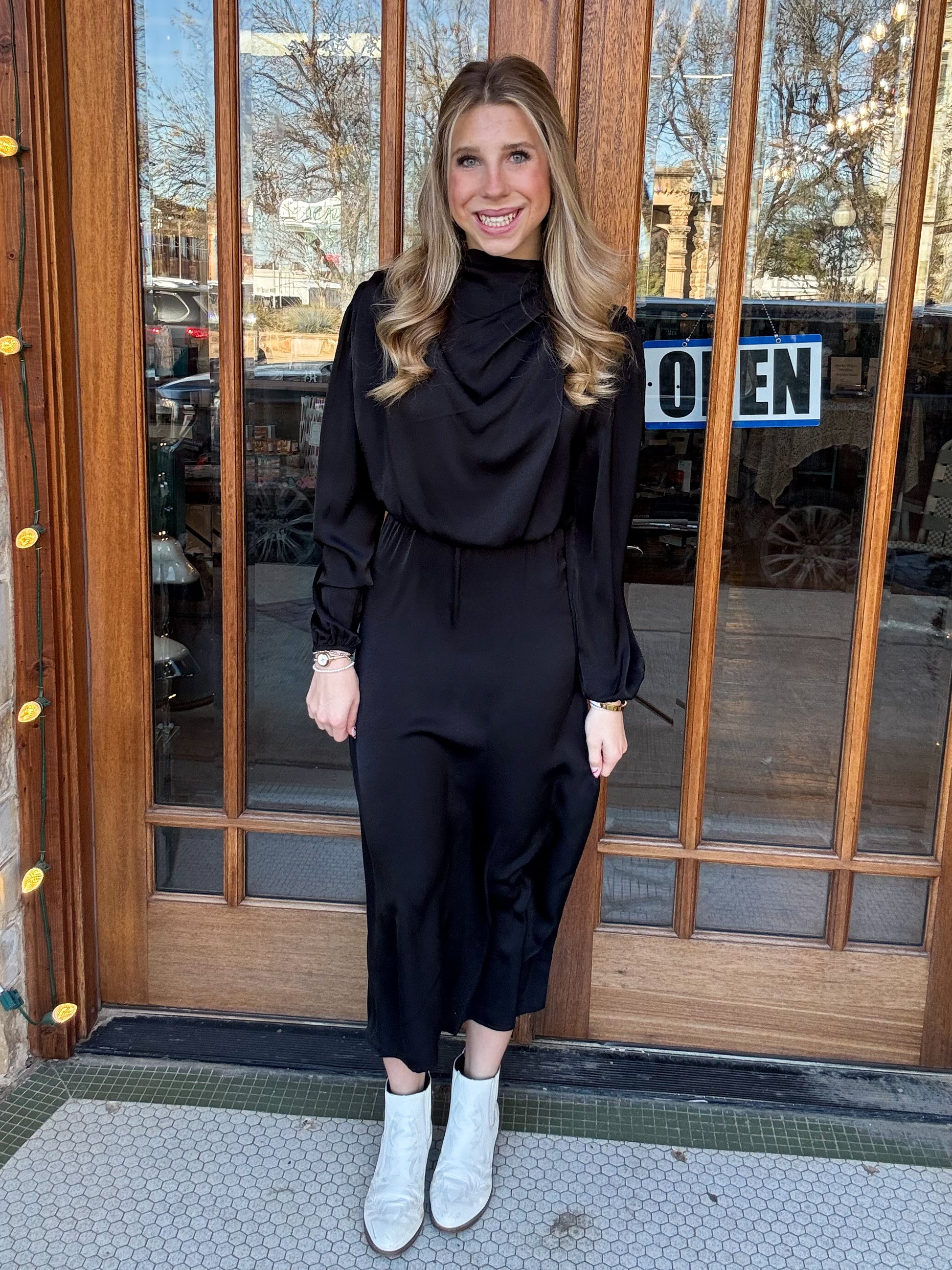 A timeless closet essential. This long-sleeve black midi dress features a flattering fit, soft stretch fabric, and elegant silhouette—perfect for work, church, or a night out. Easy to style and endlessly versatile.