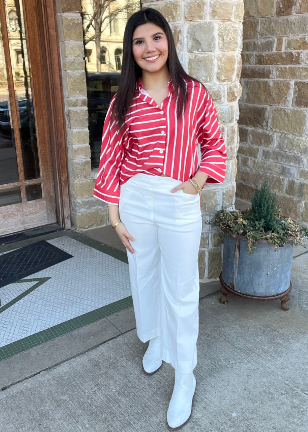 These pull-on wide-leg crop pants are designed for ultimate comfort and style. The stretchy fabric and relaxed fit make them perfect for everyday wear, while the cropped length keeps them modern and chic. Dress them up with heels or keep it casual with sandals!