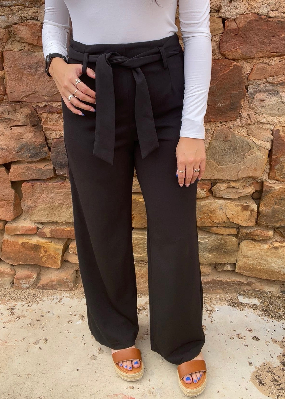 Elevate your everyday style with these effortlessly chic black wide-leg pants. Designed with a flattering high-rise fit and a self-tie waist belt, they give you the perfect mix of comfort and sophistication. The flowy wide-leg silhouette adds movement and elegance, making them versatile enough for both workdays and weekend outings. Pair them with a sleek blouse for the office or a fitted top for a polished casual look.