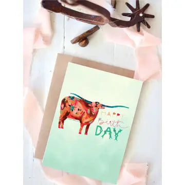 Make their day extra colorful with this vibrant "Happy Birthday" card featuring a bold, multicolored longhorn steer. Set against a soft mint green background, this western-inspired design brings a fun, festive twist to any birthday celebration. Perfect for cowboys, cowgirls, and anyone who loves a little wild in their life!