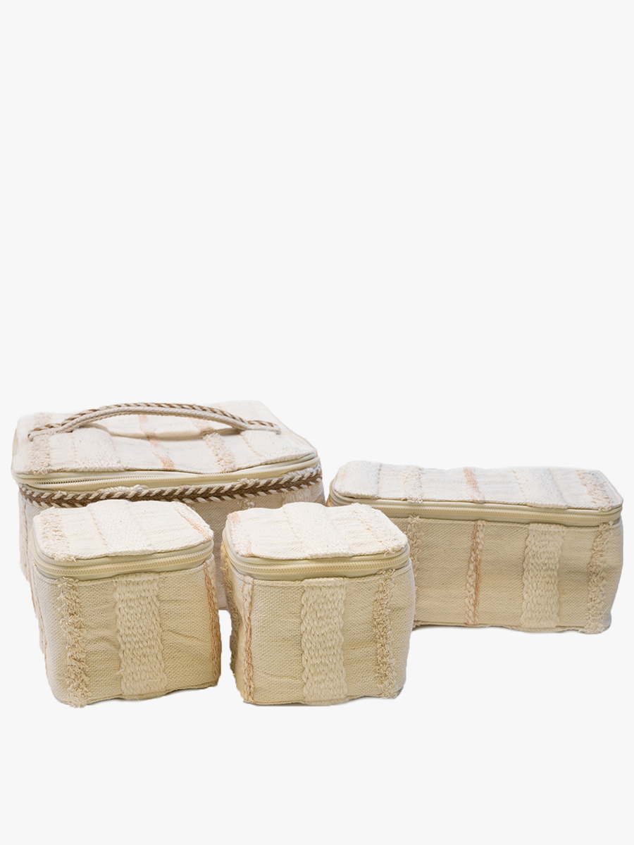 Beige/White Fiona Cotton Cosmetic Case
