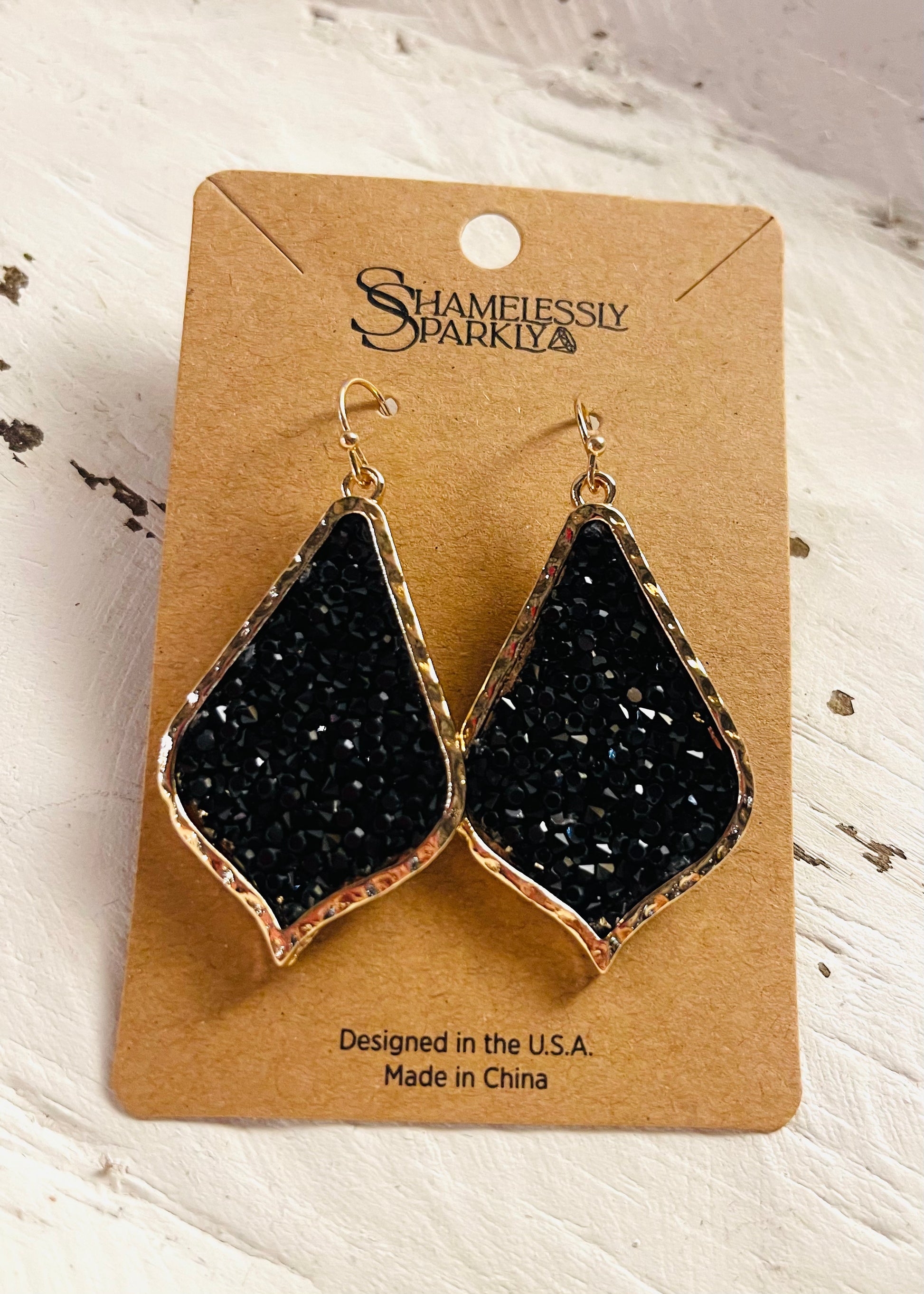Jewelry | Earrings Black Glitter Pave Rhinestone Teardrop
