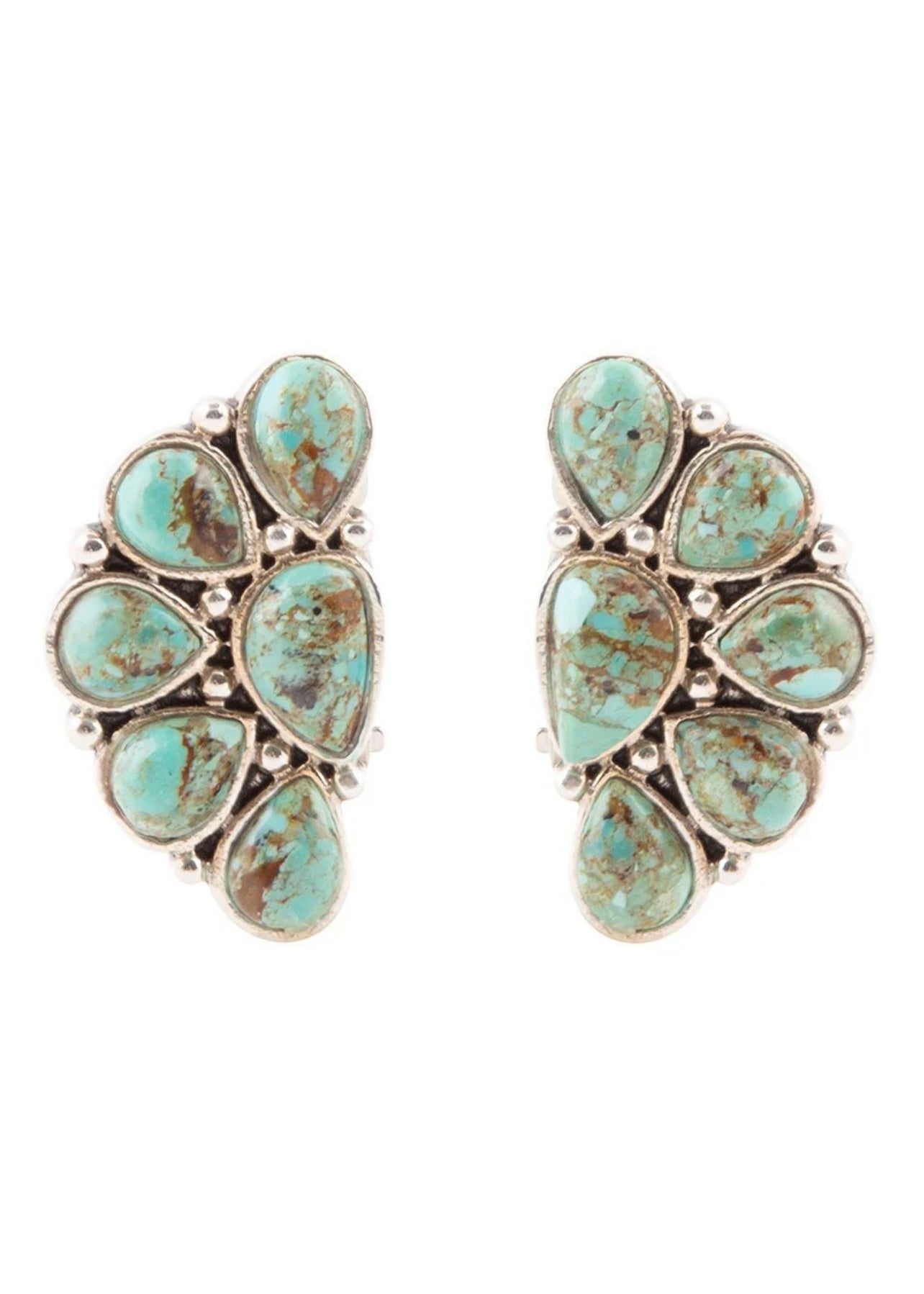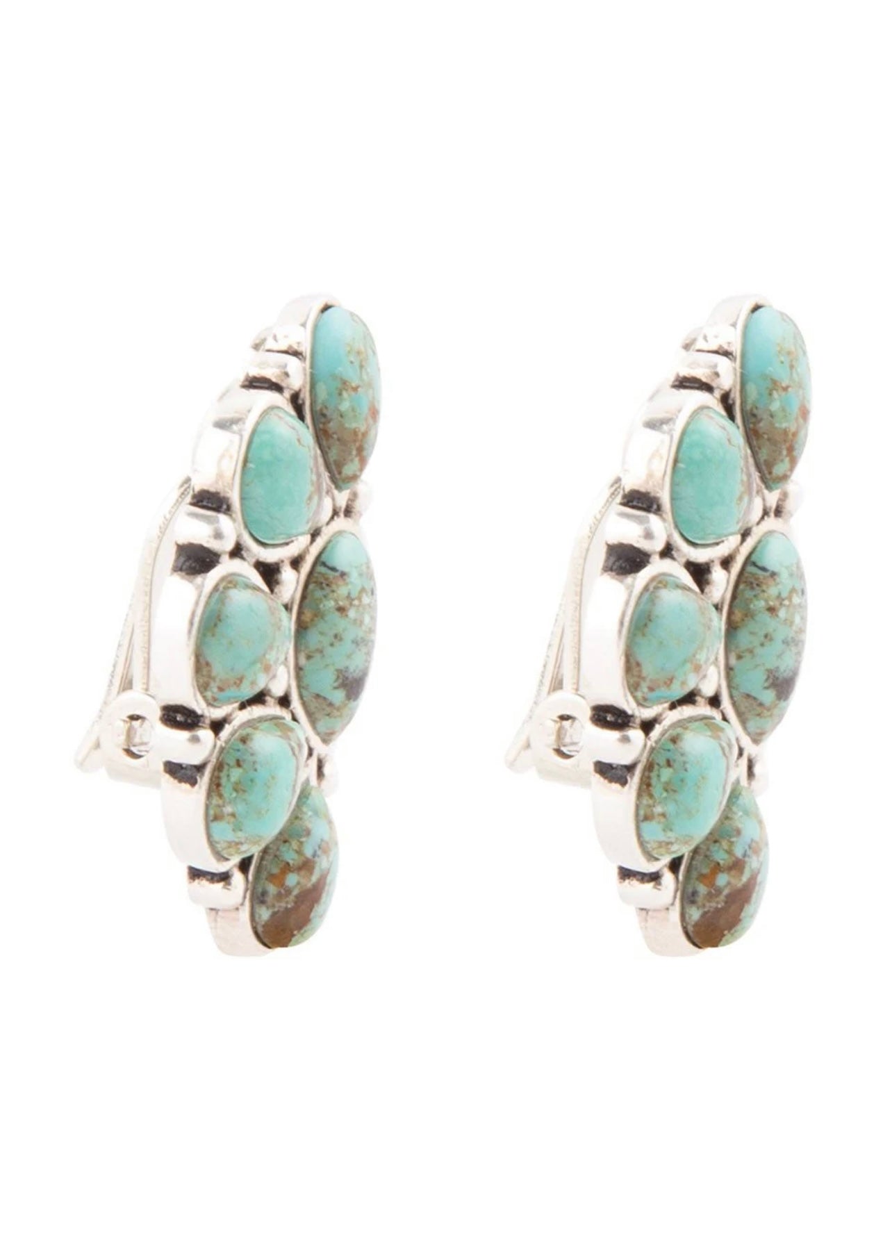 This turquoise clip earring features a combination of bright turquoise and sterling silver for a timeless, elegant look. Crafted in fine detail, this design is perfect for adding subtle luxury to any outfit. Earrings are .75" in length and .5" in width.