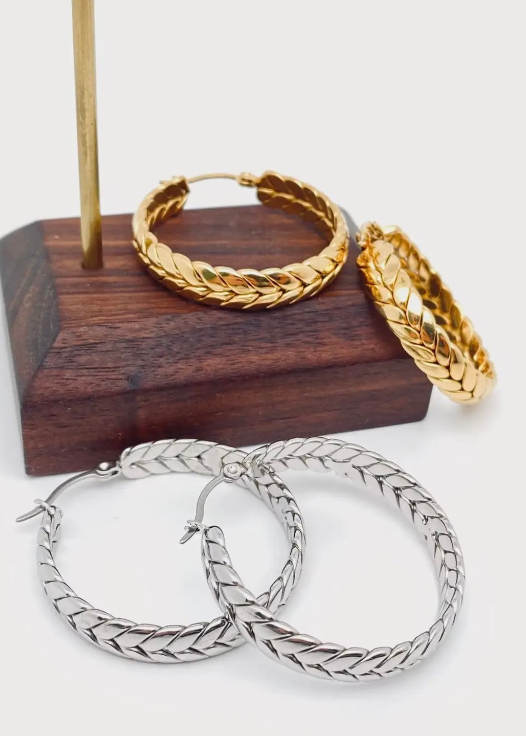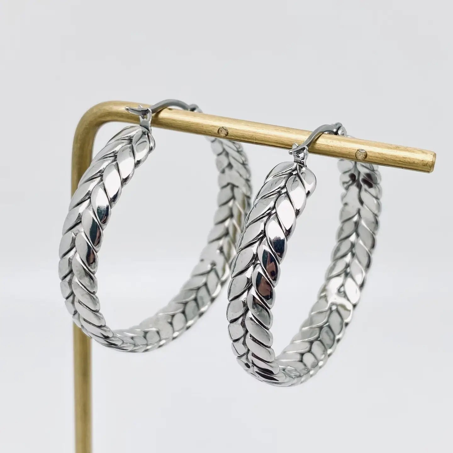 Jewelry | Earrings Wheat Shaped Stainless Steel Hoop