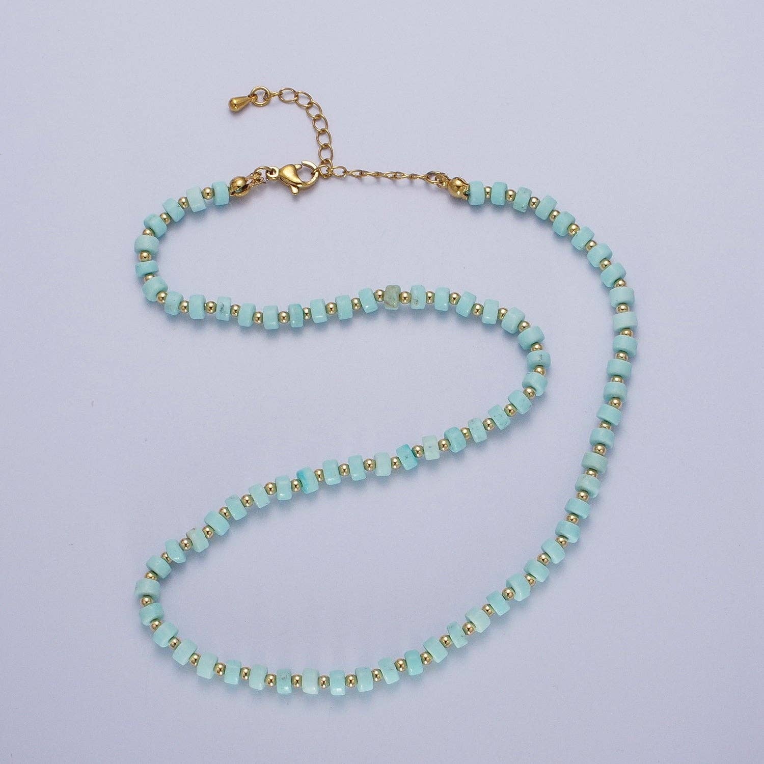 Jewelry | Necklace Gold Filled Blue Turquoise Rondelle Heishi Gemstone Gold Spa