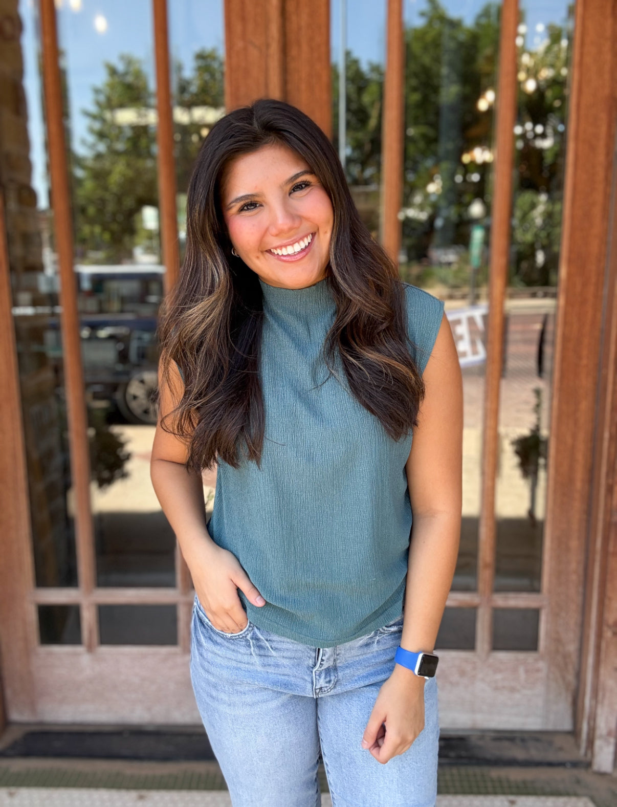 Tops | Blouse Teal Green Stretchy Crinkled Fabric Sleeveless