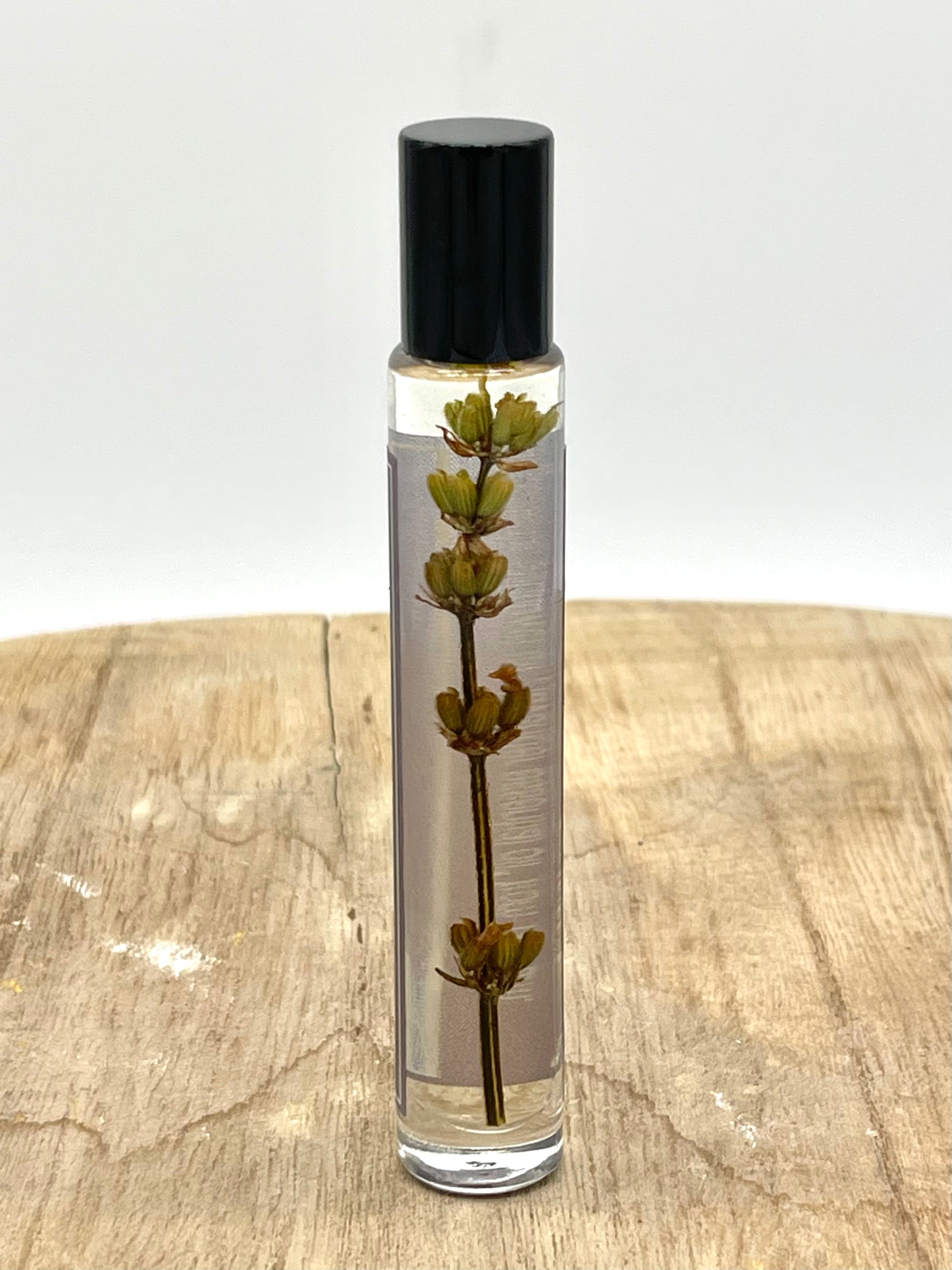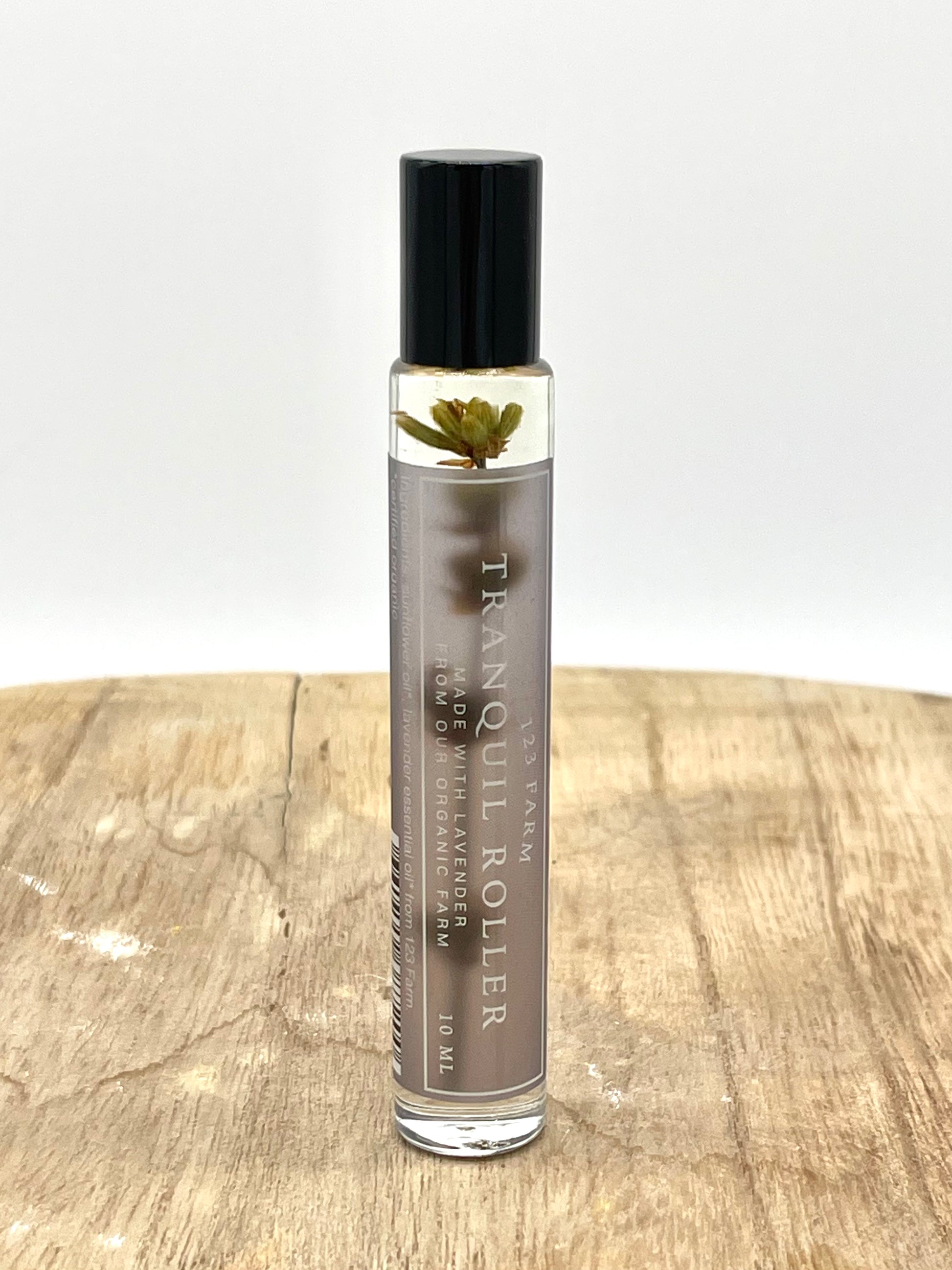 Bring the relaxing aroma of lavender everywhere you go. Blended with organic sunflower oil and hand-harvested lavender from our farm, apply this roller to pulse points to rejuvenate your senses. 10 ml.