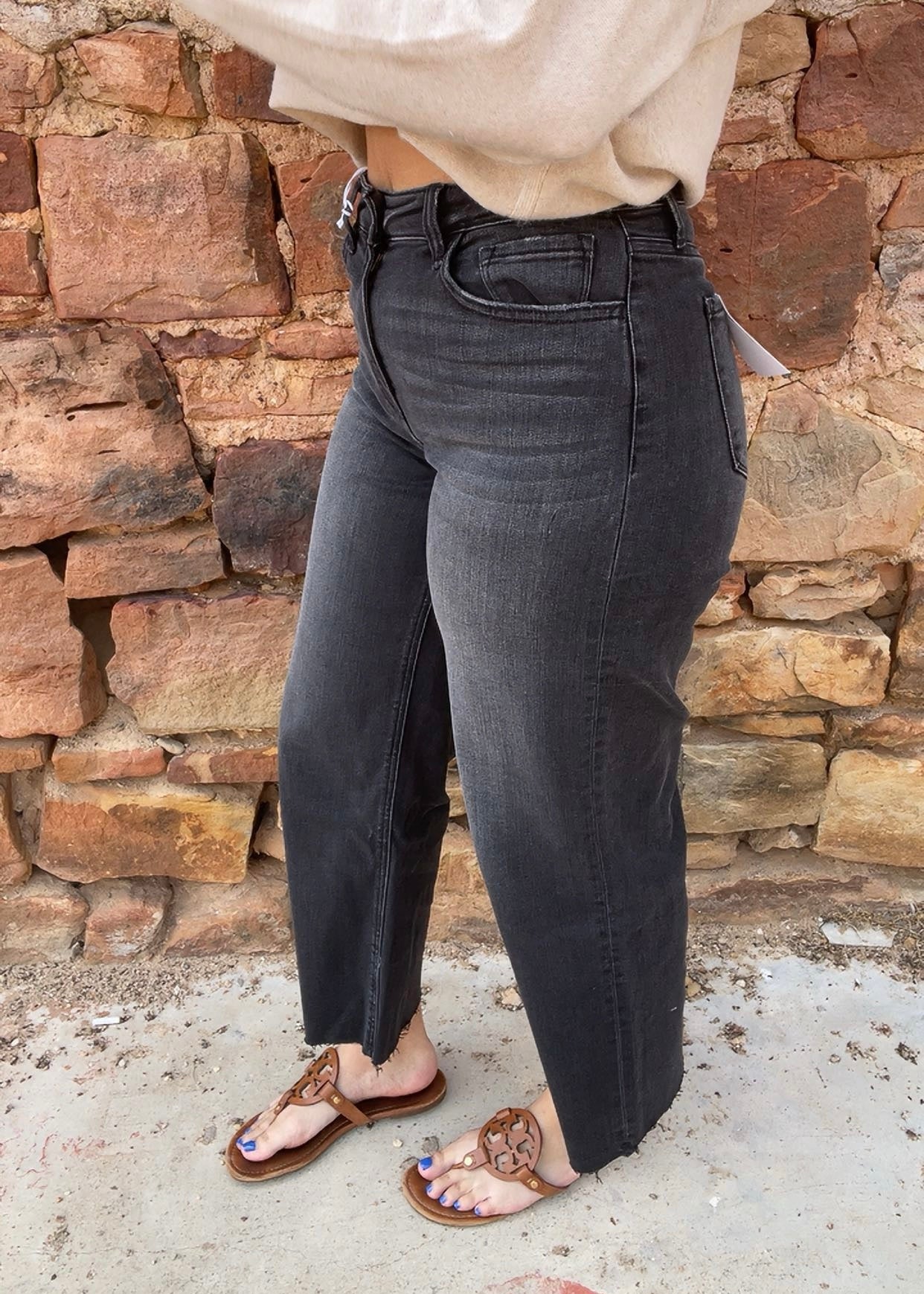 Bottoms | Flying Monkey High Rise Clean Cut Raw Hem Crop Wide Leg
