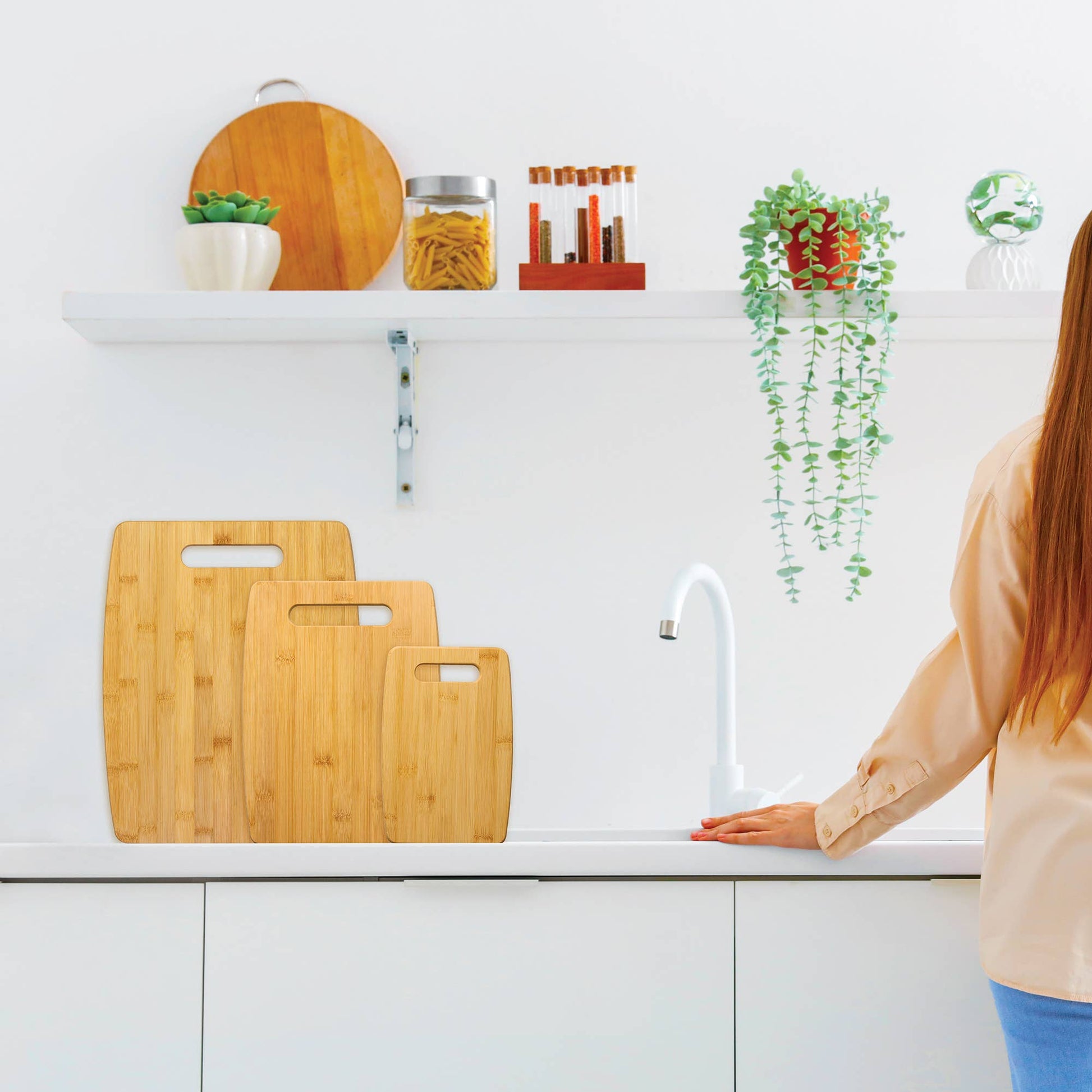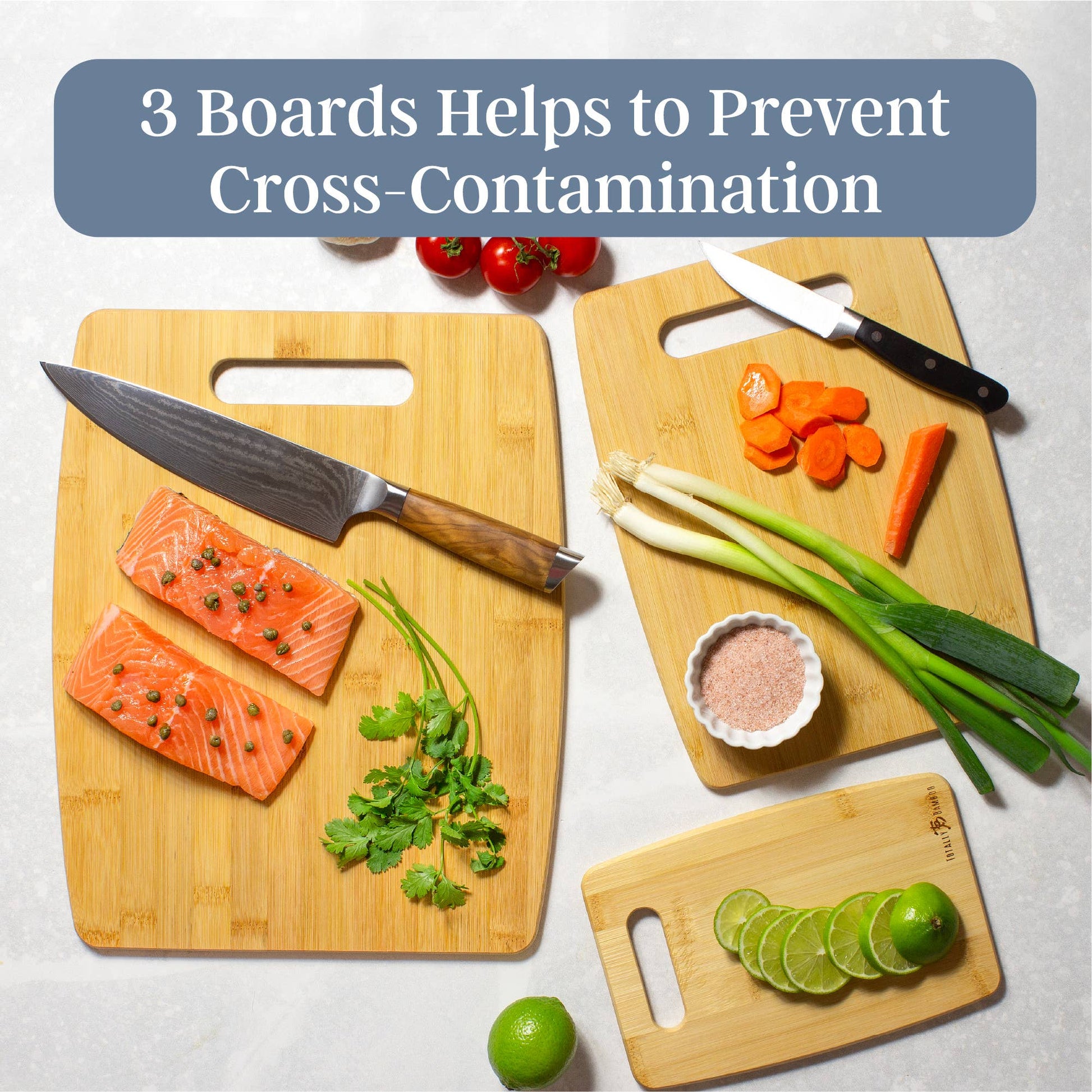 Elevate your kitchen essentials with this beautifully crafted 3-Piece Bamboo Cutting Board Set! This set of chopping boards offers unbeatable value and versatility, making them a must-have for every shopper’s kitchen. Crafted from natural, sustainable bamboo, these cutting boards are durable, lightweight and knife friendly. Offering three cutting boards is a perfect way to help your customers avoid cross-contamination during food prep: recommend the large board for meat and seafood the medium board for bread and produce and the smaller board for cheese, limes, lemons and garnishes. The natural beauty of these bamboo wood cutting boards allows them to double wonderfully for serving prepared food from the grill or kitchen or as a cheese board for serving charcuterie.