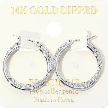 Jewelry | Earrings 14K Sliver Dipped Hypoallergenic Textured Crisscross Pin Catch Hoop Earrings