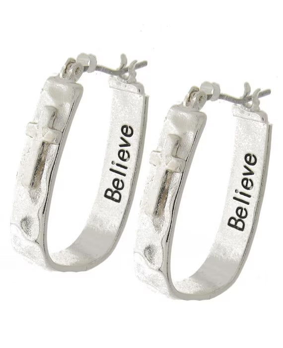 Jewelry | Earrings Overhanging Cross Hoop Antique Silver