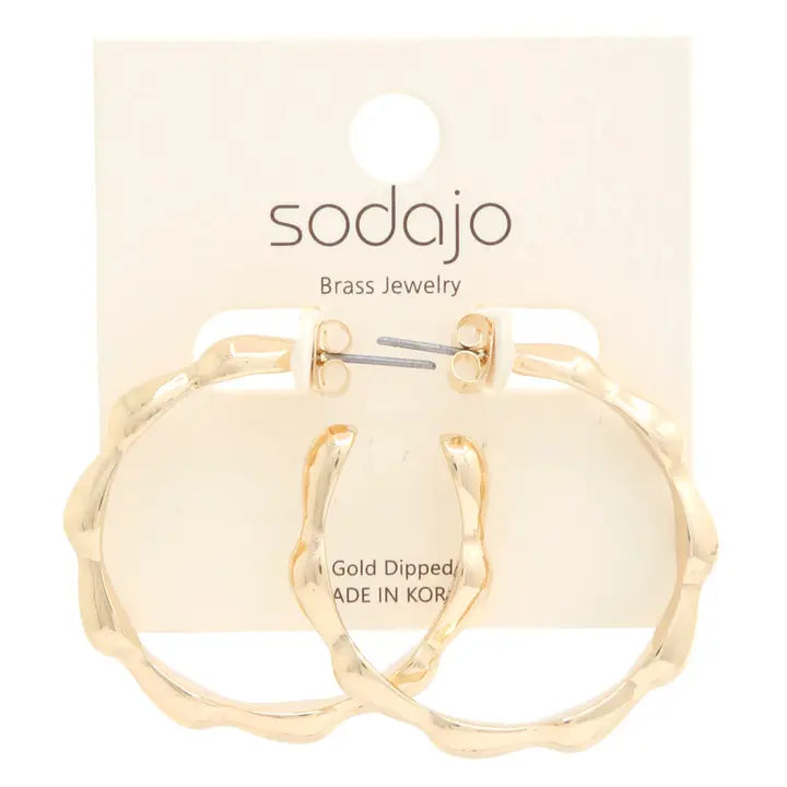 Sleek, stylish, and full of shine—these Sodajo gold-dipped hoop earrings feature a bold twisted design that adds texture and elegance to any look. Lightweight and versatile, they’re perfect for dressing up a casual outfit or completing a polished ensemble. A must-have staple for your jewelry collection!