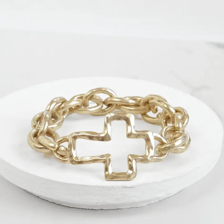 Jewelry | Bracelet Silver Hammer Cross Charm Stretch Chain