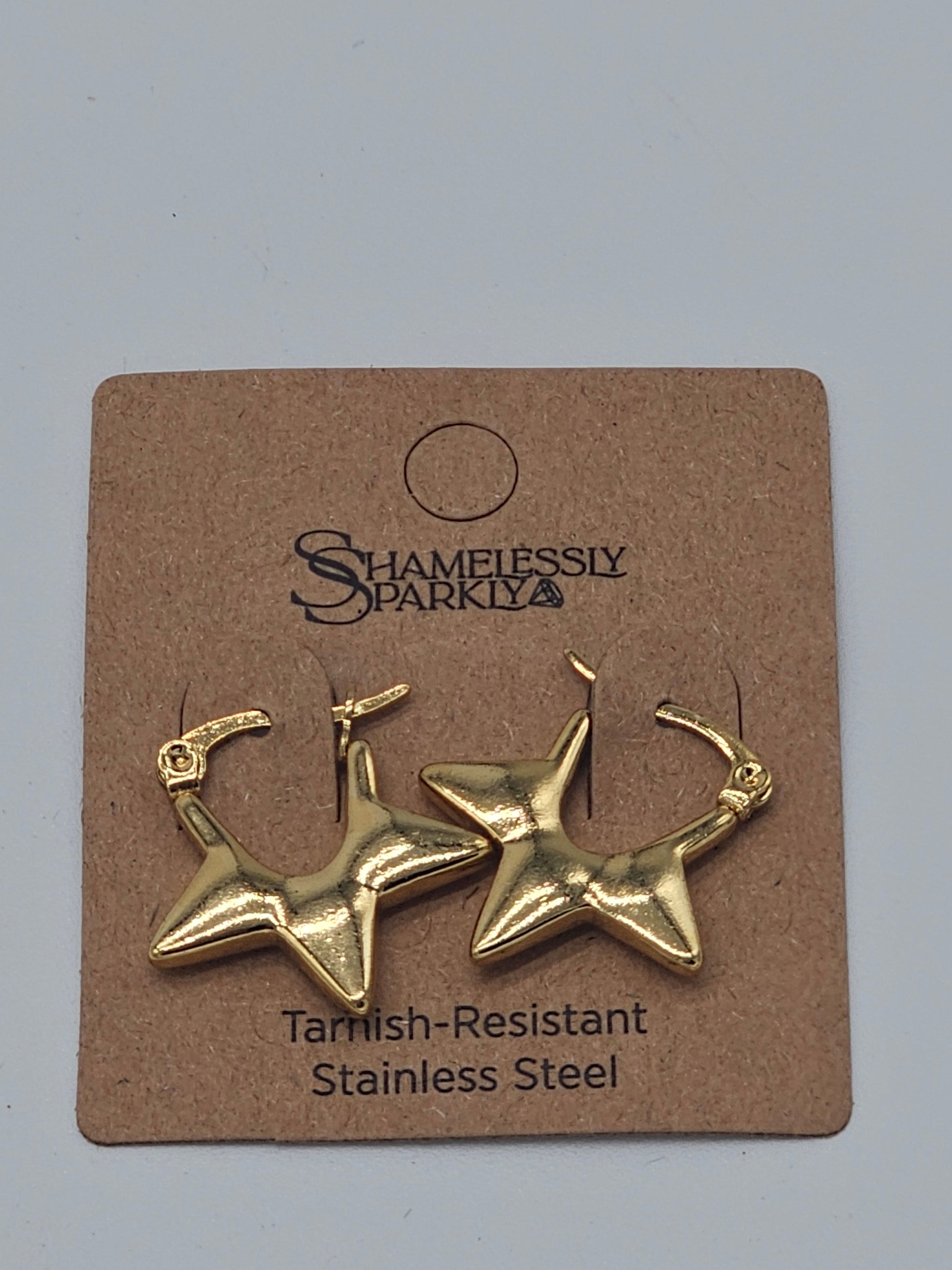 Make a bold statement with these chunky gold star hoops by Shamelessly Sparkly. Crafted from tarnish-resistant stainless steel, these unique earrings feature a striking oversized star design that adds a fun, edgy vibe to any outfit. Lightweight and full of personality—perfect for standing out in style.