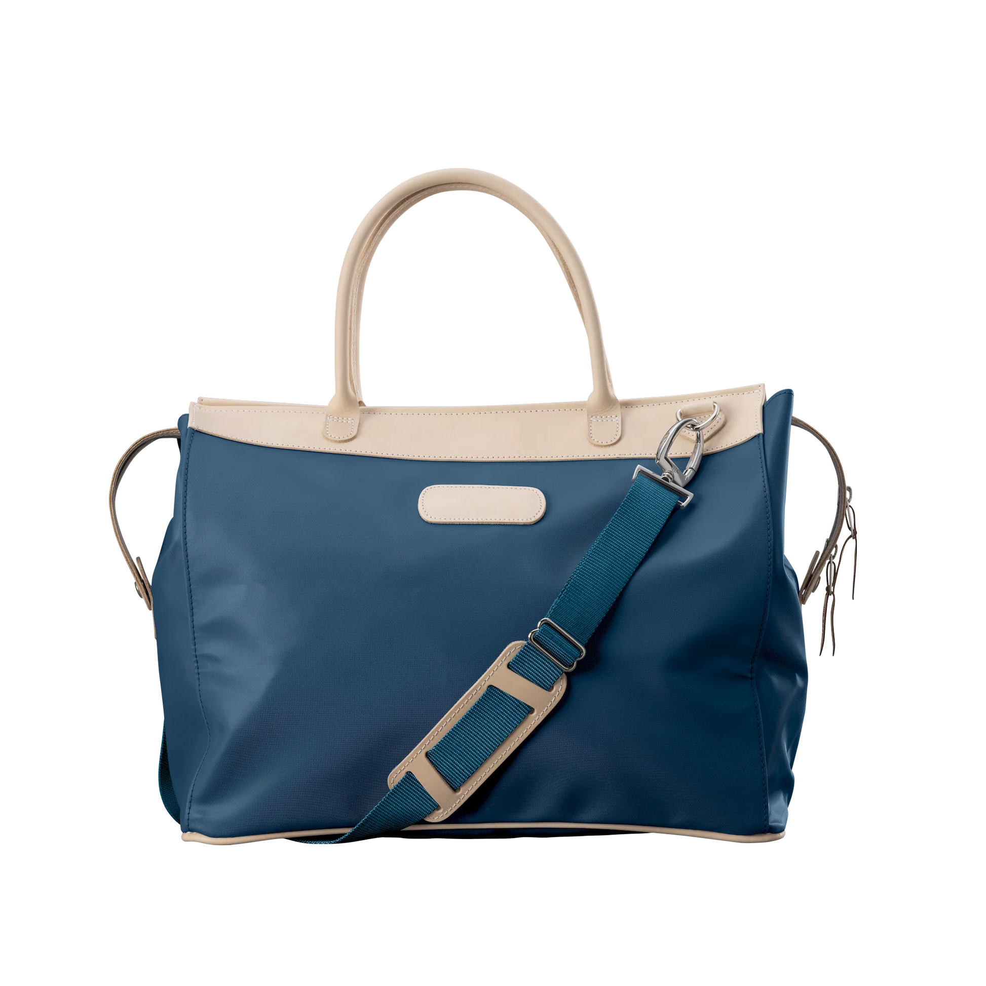 Natural Leather handles and a detachable webbing crossbody strap