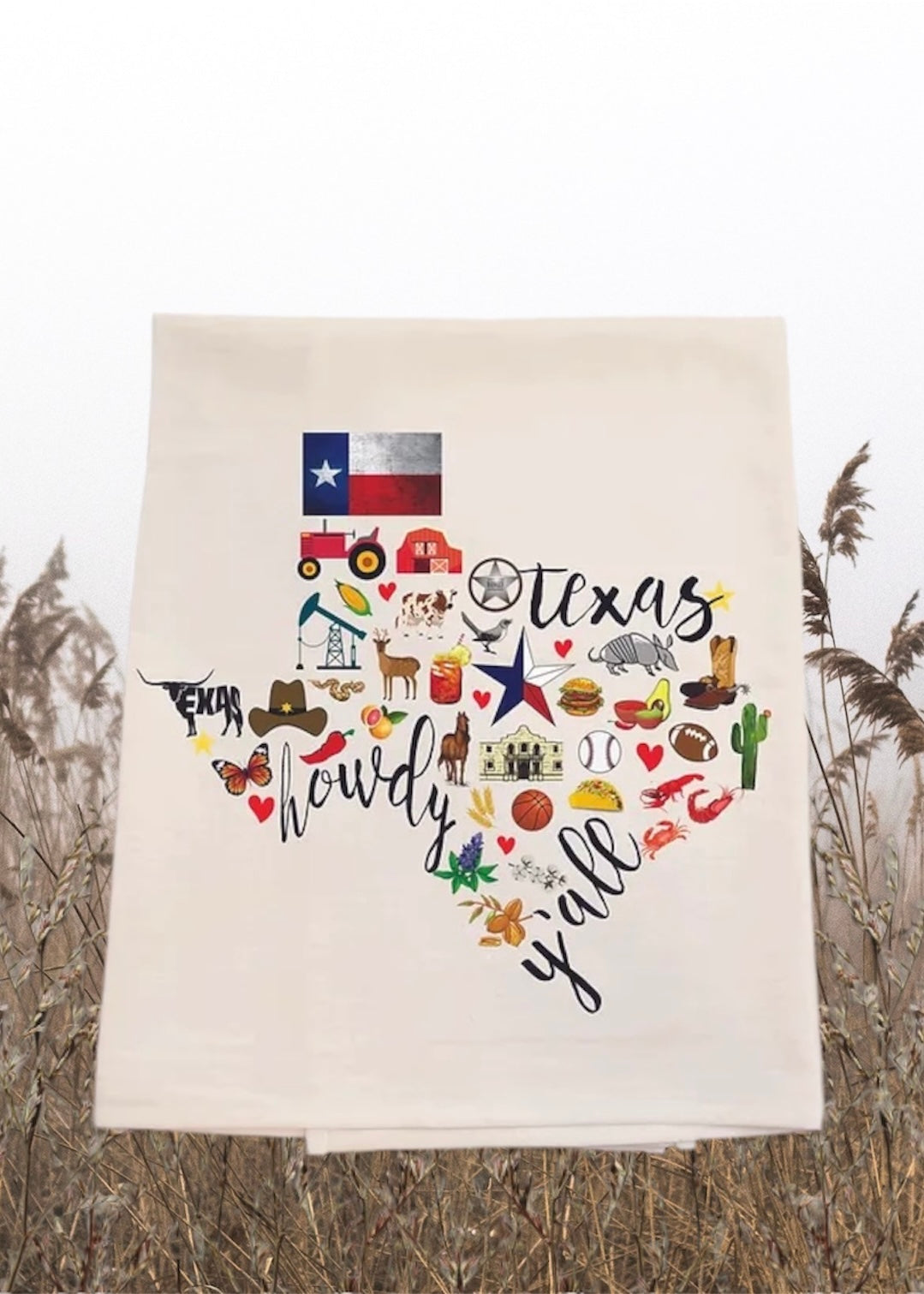 Our Farmhouse Tea Towels are a charming addition to any kitchen and a great compliment with a bottle of wine!