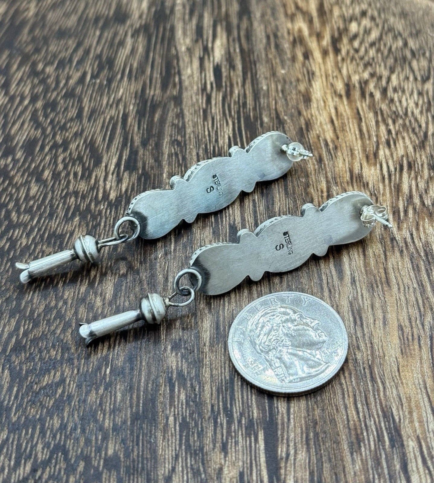 Navajo Handmade Sterling Silver Kingman Turquoise Blossom Post Dangle Earrings