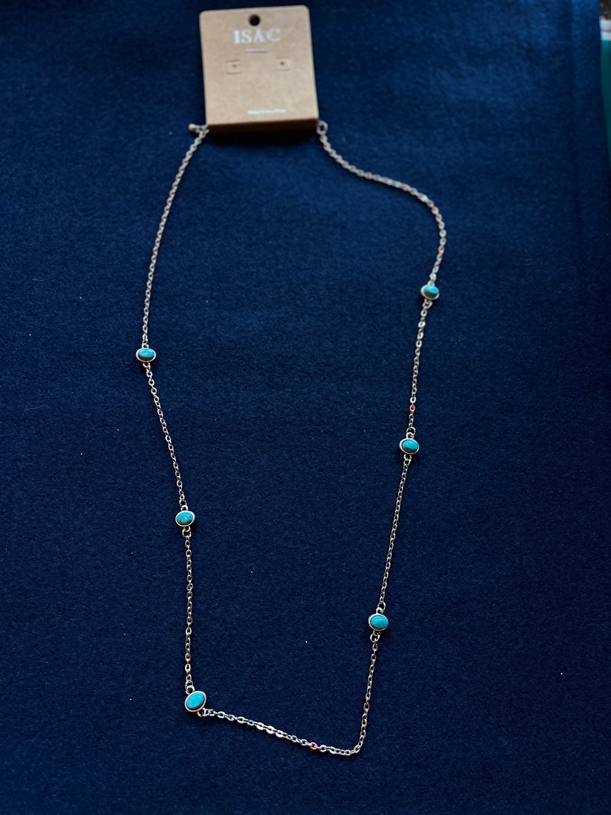 Jewelry | Necklace Silver Chain with Oval Turquoise Pendants