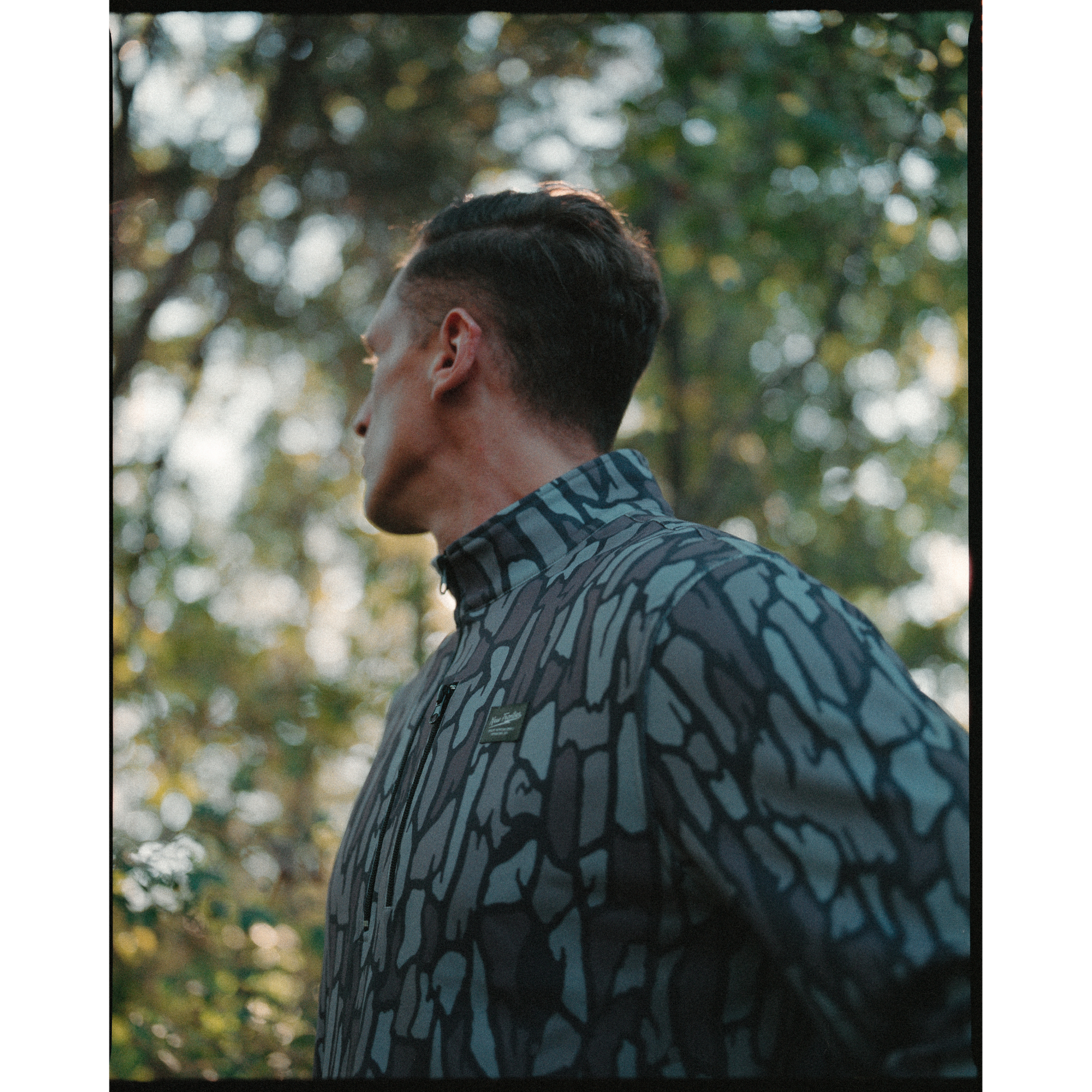New Frontier Camo Pattern * Premium Poly-Microfleece Blend * Chest Zip Pocket * 1/4 Zip * Regular Fit * Woven Label New Frontier Camo was inspired by the types of trees we see here in the Daniel Boone National Forest. Camo celebrates the hard-working, blue-collar spirit that runs through our region. It’s a nod to all the vintage hunting camo patterns we saw in our fathers hunting closet. This camo is reimagining a classic — breathable, durable, and built to move from the woods to the workday with ease.