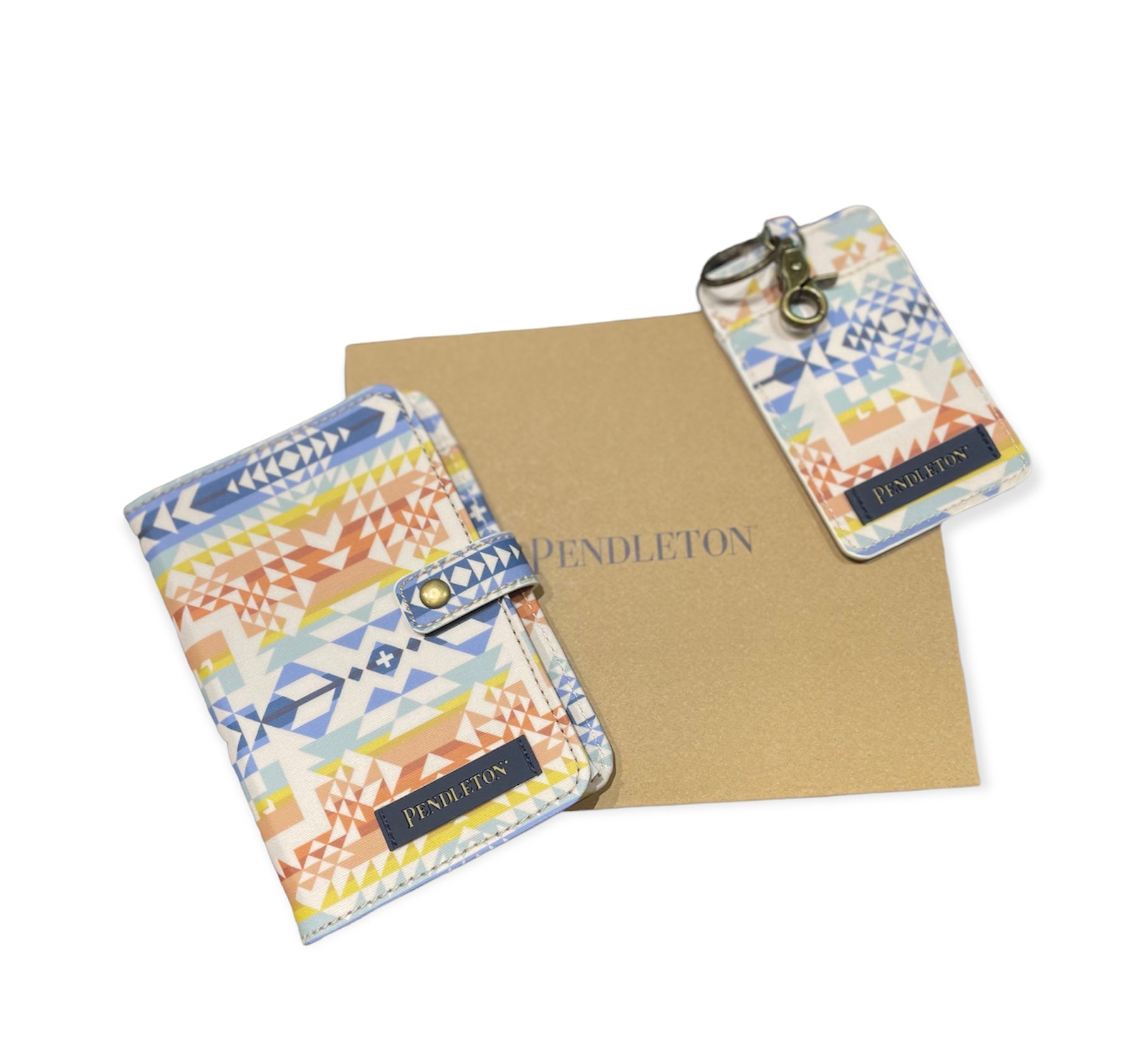 A stylish passport case and luggage tag set made of durable PVC coated canvas to withstand travel while resisting water and dirt. Equipped with snap closure, multiple card slots, and ID window.
