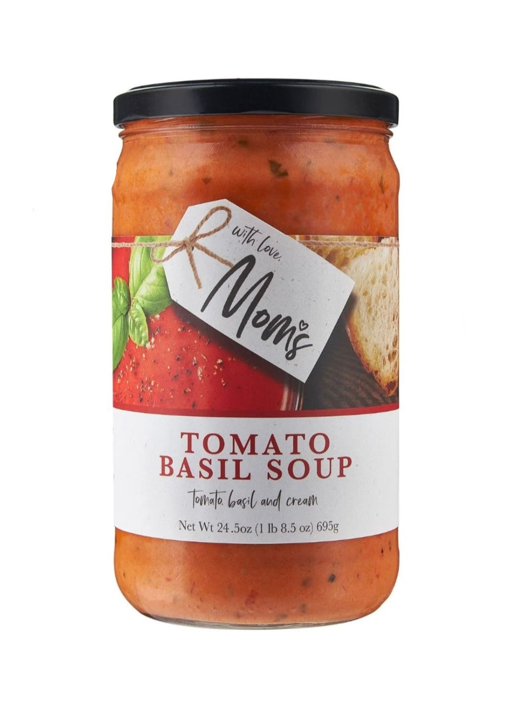 The essence of comfort food is captured in Mom's Tomato Basil Soup. Ideal for the holidays or when gray skies and chilly rain bring back the cravings of a childhood favorite, this hearty soup is created with special tomatoes, basil and heavy cream. Lovingly handmade and in limited quantities, just like Mom would make, our Tomato Basil Soup is an instant classic. Simply heat and enjoy!