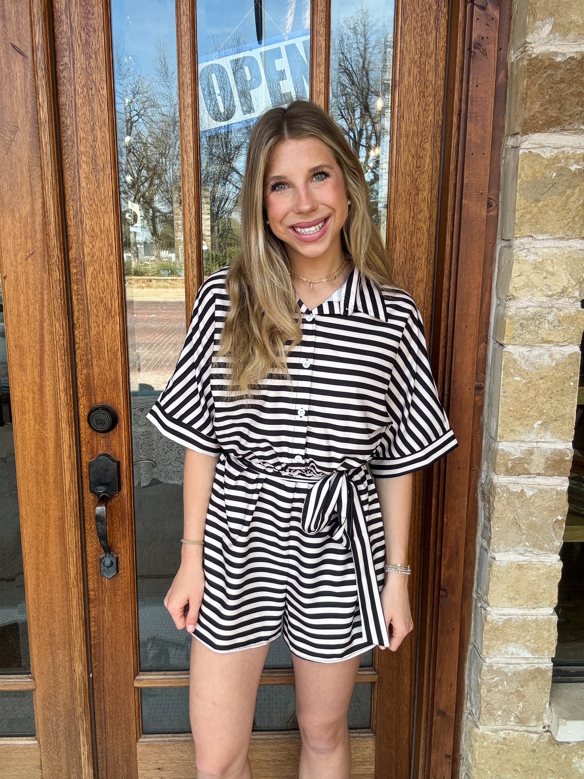 Striped Button Up Romper