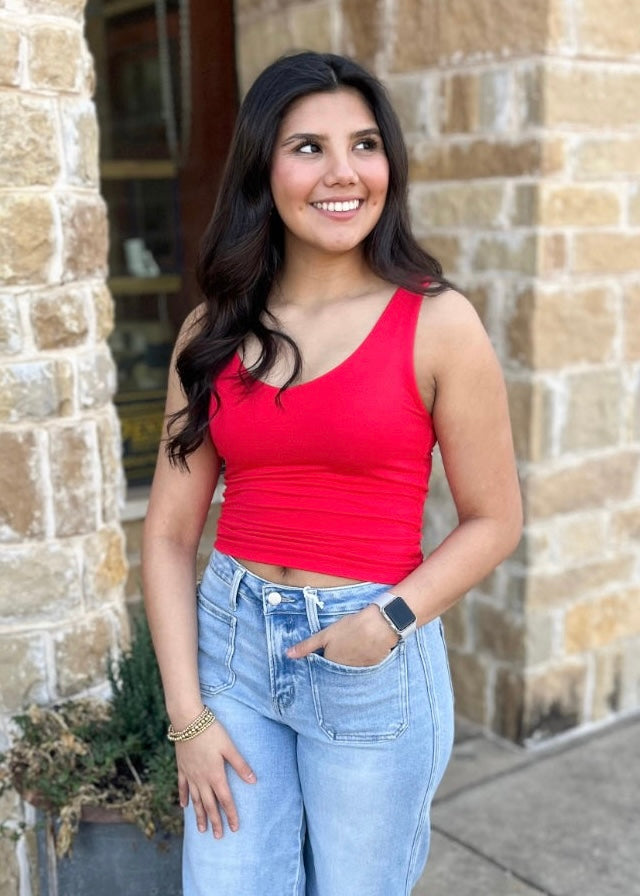 This sleeveless tank features a classic crew neckline and a relaxed, easygoing fit perfect for layering or wearing on its own. Crafted from soft, breathable fabric with a slightly cropped hem, it offers all-day comfort and effortless style. Whether paired with jeans, shorts, or a skirt, this staple piece is a must-have for casual, everyday wear.