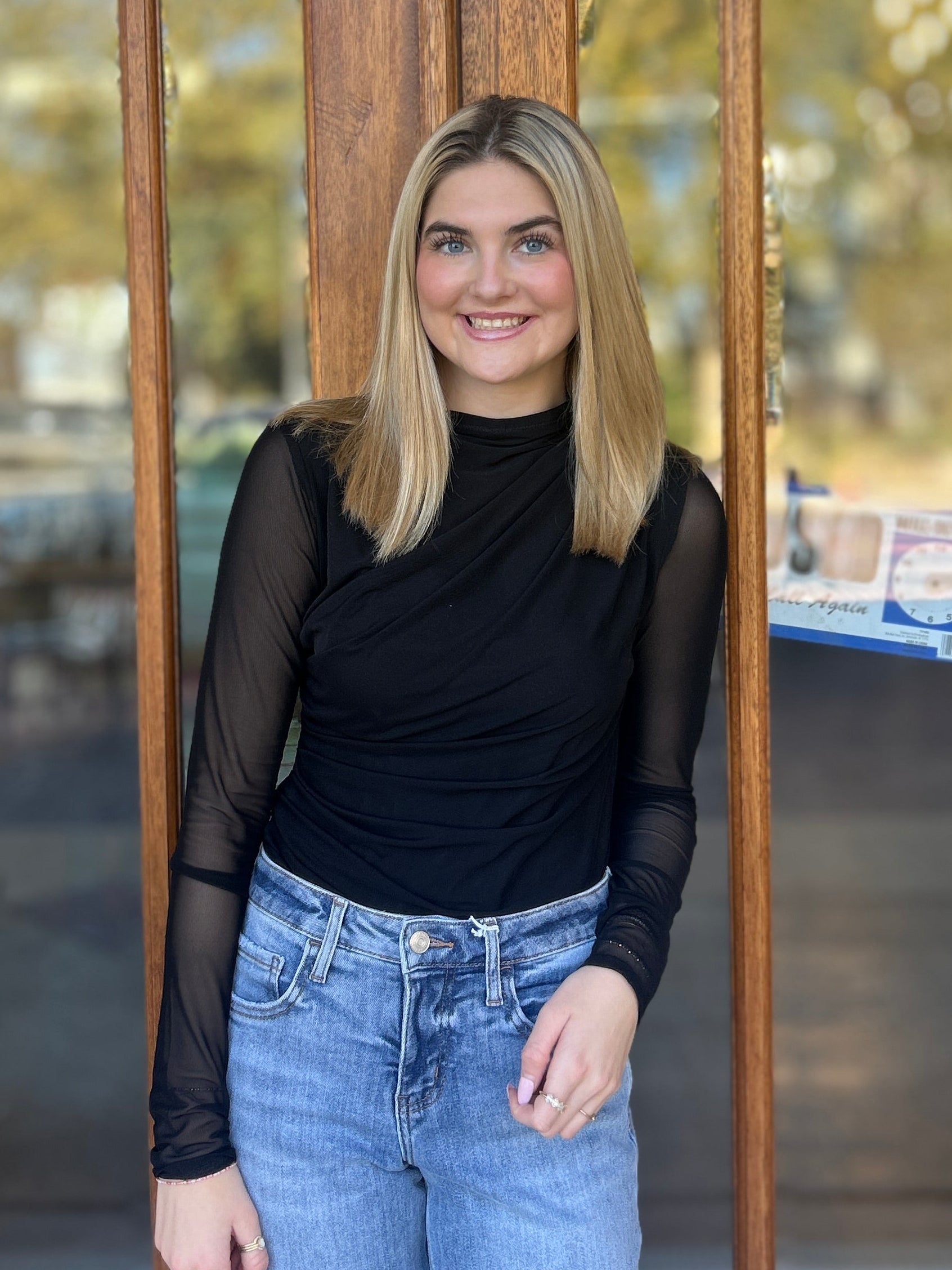 Featuring flattering all-over ruching, this piece is designed to hug your curves in all the right places. The sheer mesh overlay adds a touch of sultry elegance, while the smooth, fitted bodysuit base keeps everything seamless and secure. Perfect for nights out, holiday events, or any moment you want a bold, confident look.