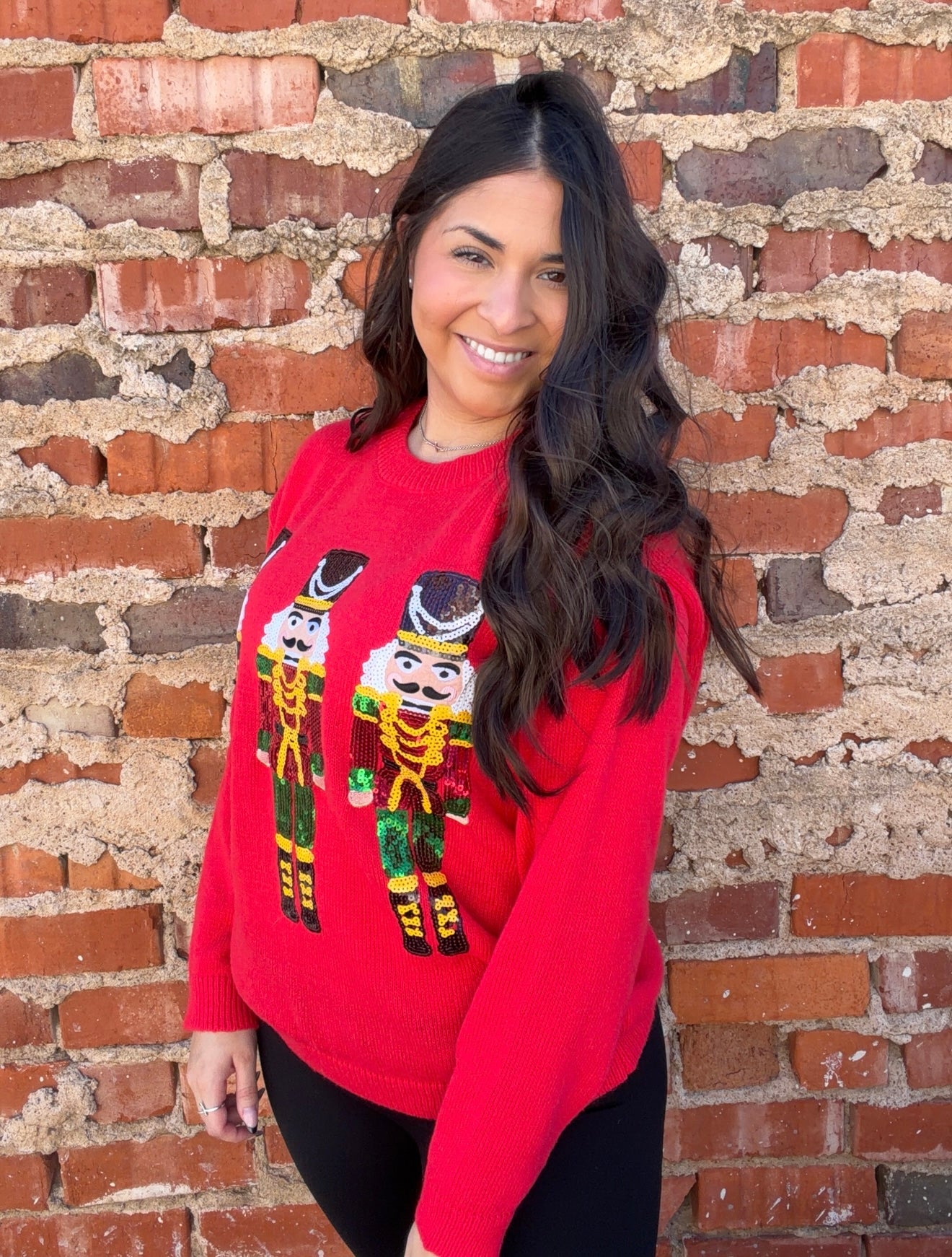 Bring the magic of the holidays to your wardrobe with this cozy, statement-making sweater. Featuring beautifully embroidered nutcrackers accented with shimmering sequins, this piece blends festive charm with everyday comfort. Soft, warm, and eye-catching, it’s the perfect sweater for holiday photos, parties, or just adding a little sparkle to your day.