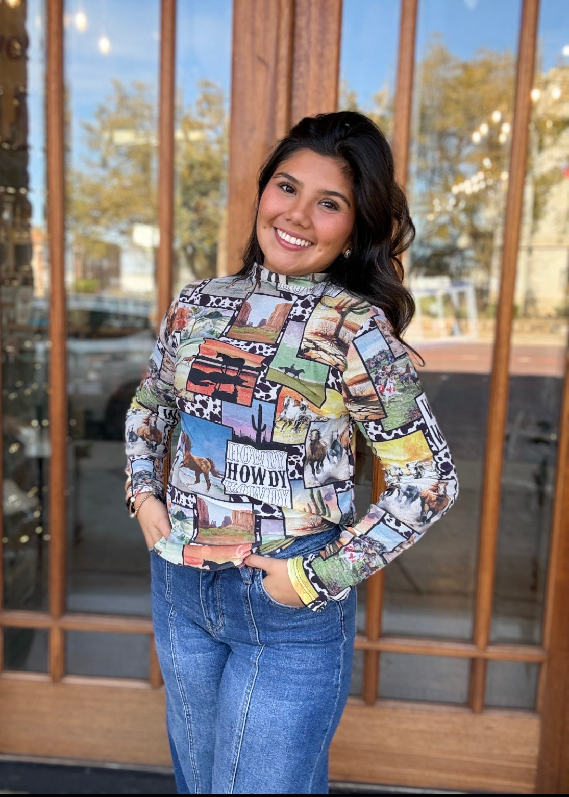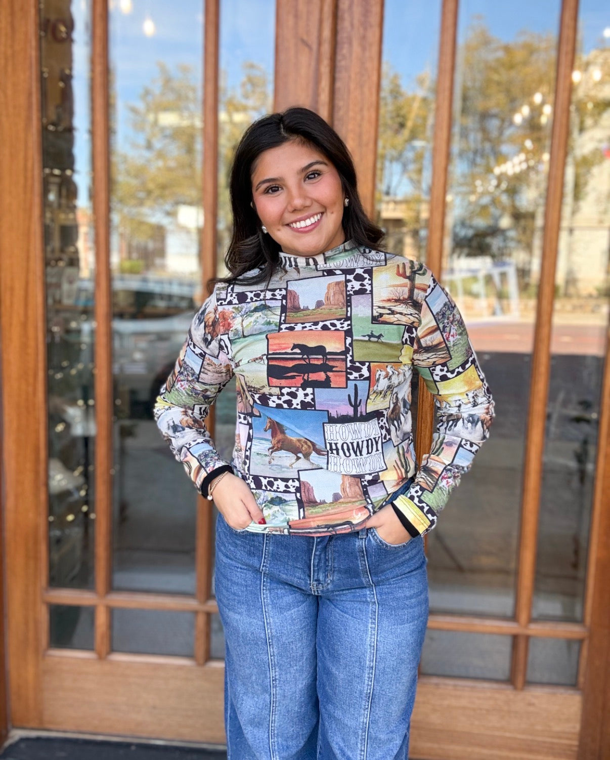 Wild West Patch top features a lightweight mesh fabric adorned with eclectic Wild West–inspired patches that add texture, personality, and standout detail. The long sleeves offer a sleek, fitted look that’s perfect for layering under vests, jackets, or wearing on its own for a daring, fashion-forward outfit.